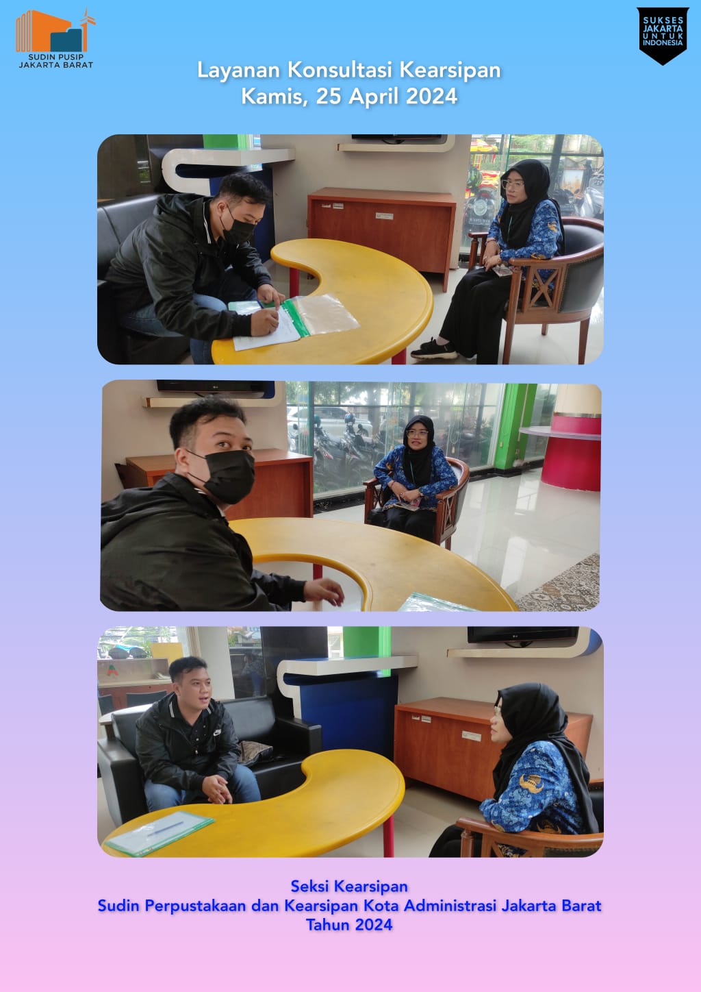 Melaksanakan kegiatan layanan konsultasi arsip bagi masyarakat perorangan yang datang ke Suku Dinas Perpustakaan dan Kearsipan Kota Administrasi jakarta Barat